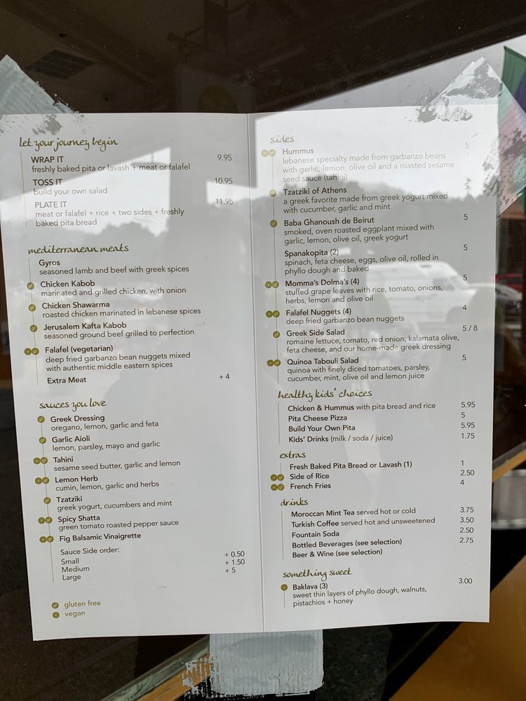 Seasoned lamb and beef, lettuce, tomatoes, onions, with tzatziki sauce in a pita bread with a side of Greek salad