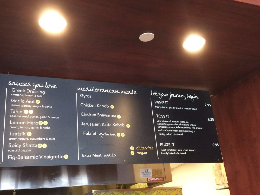 Build your own salad + meat or falafel + freshly baked pita bread.